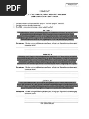 Soal kunci jawaban soal essay nomor 1 hingga 10 buku geografi sma kelas x untuk jawaban atas soal halaman 101 hingga 103.